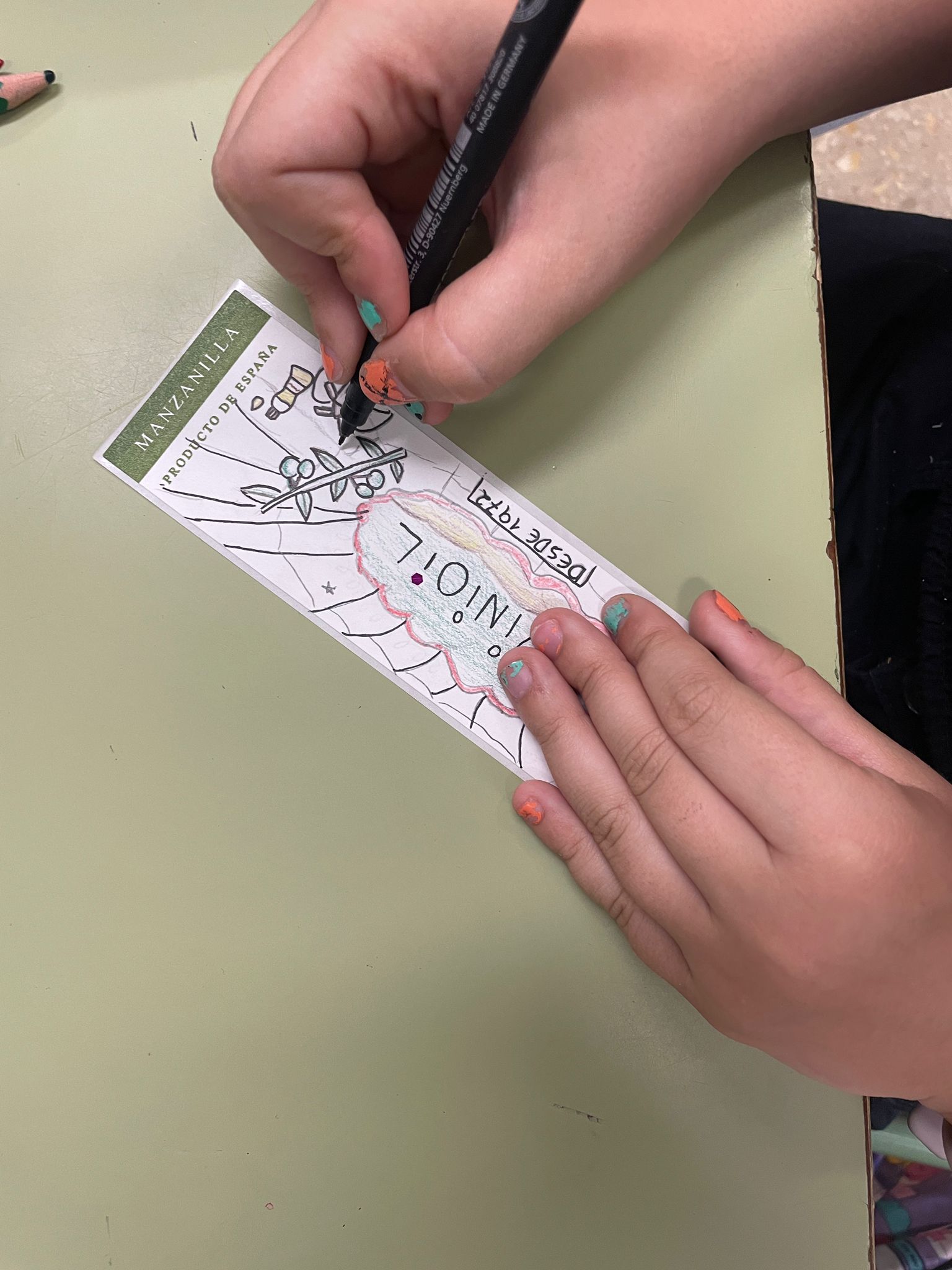 Los alumnos no se fueron con las manos vacías, ya que tuvieron la oportunidad de personalizar artísticamente las etiquetas de unas botellitas de aceite de oliva virgen extra de ‘la alcublana’ para poder compartir con sus familias el AOVE de Alcublas, uno de los más apreciados de la provincia de Valencia.